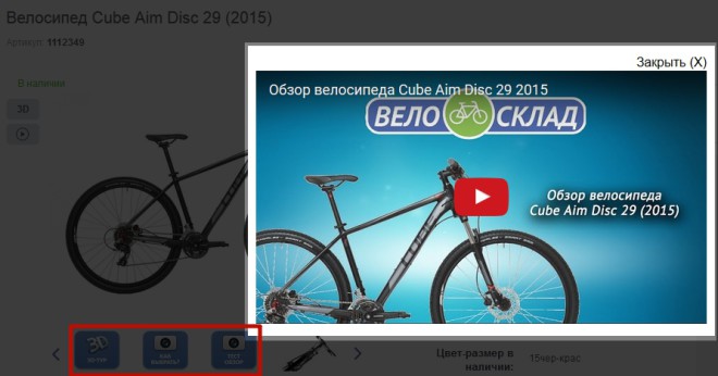 - Интернет-магазин Вело-Склад позволяет посмотреть видео-обзор велосипеда на странице товара: